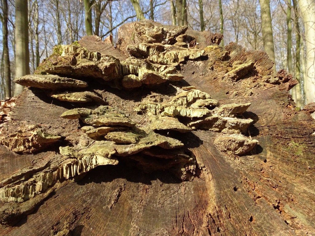 Going north, a logger had felled a tree and new life settled on the cut surface.