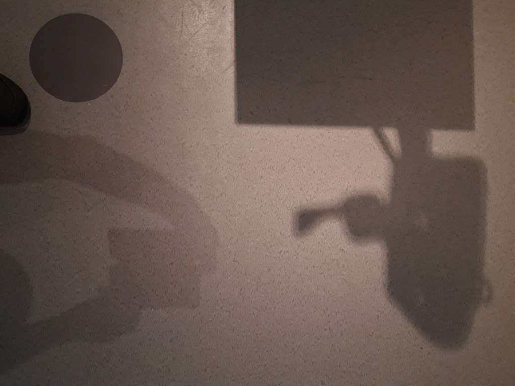 vrijelijk bewoog in de ruimte / – die plaats bood voor de scene – / om uiteindelijk te landen / in een vlek, of punt / op het plafond.